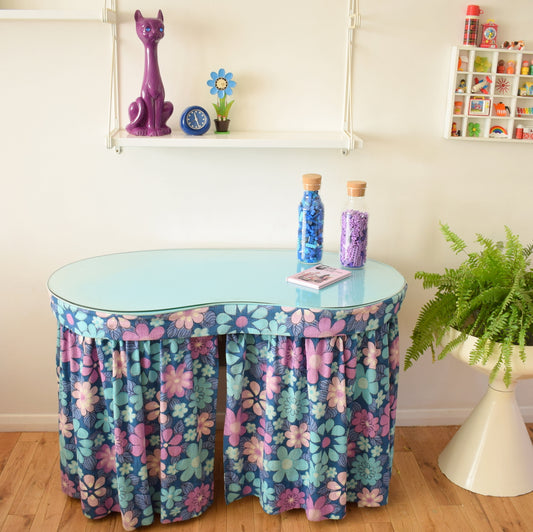 Vintage 1960s Flower Power Kidney Shaped Dressing Table - Purple & Blue