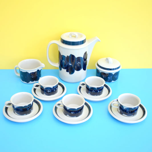 Vintage 1960s Arabia Anemone Pattern Coffee Set - Finland - Blue