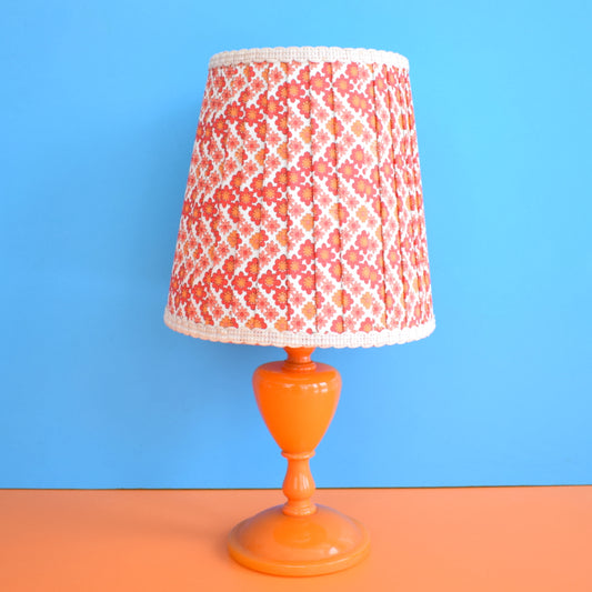 Vintage 1960s Small Orange Table Lamp - Original Flower Power Vinyl Shade, Pink & Orange