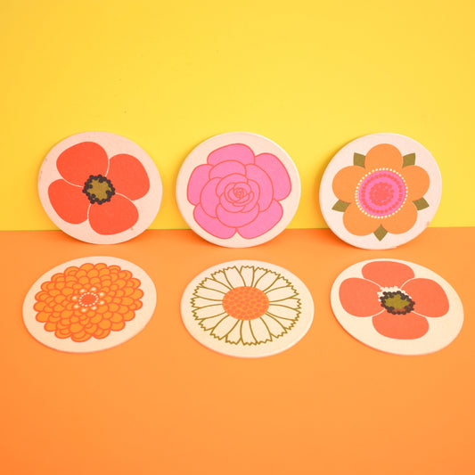 Vintage Laurids Lonborg 6 Cardboard Coasters - Flower Designs - Orange , Pink , Red , Daisy