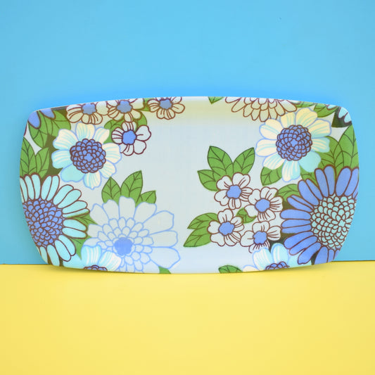 Vintage 1960s Small Flower Power Thetford Tray - Blue .