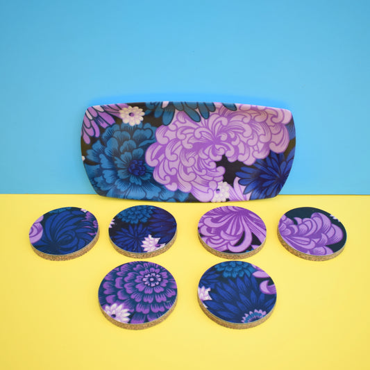 Vintage 1960s Small Flower Power Thetford Tray & Coasters - Purple
