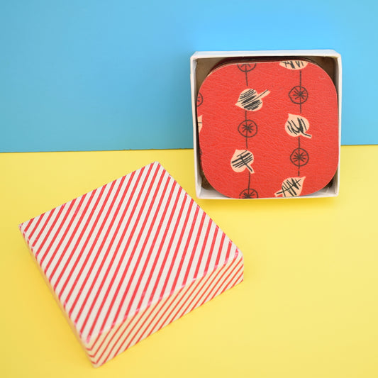 Vintage 1950s Cork Backed Coasters x6 - Red & Black