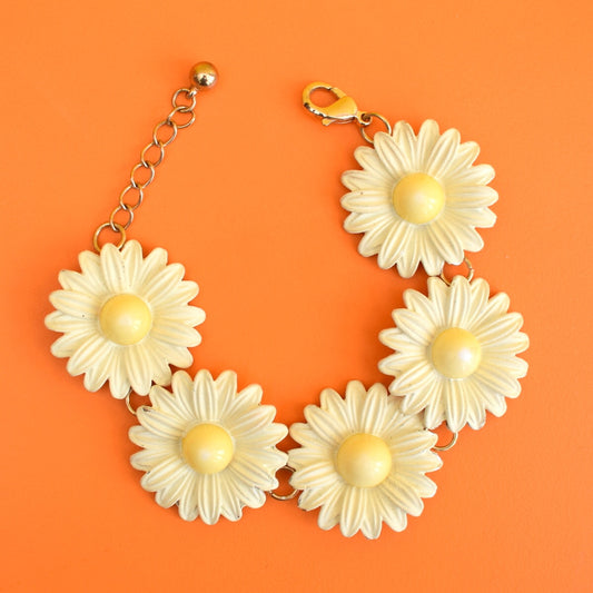 Vintage 1960s Enamel Daisy Bracelet - Flower Power - White
