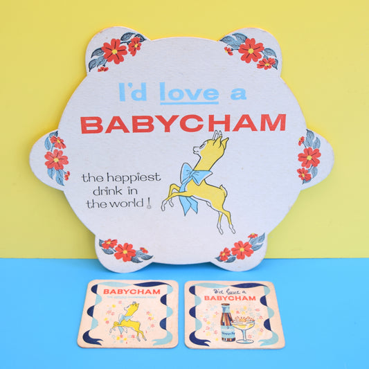 Vintage 1960s Babycham Cardboard Drinks / Tray Mats - Bambi