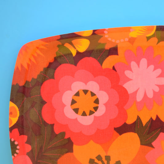 Vintage 1960s Flower Power Thetford Tray - Pink & Orange