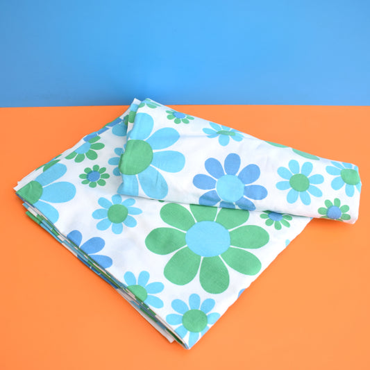 Vintage 1960s Sheet - Bold Flower Power - Blue & Green
