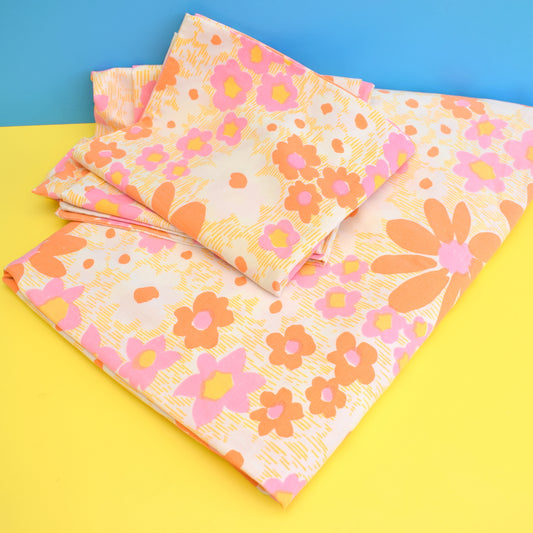 Vintage 1960s Double Sheet & Pillow Cases - Bold Flower Power - Pink & Orange