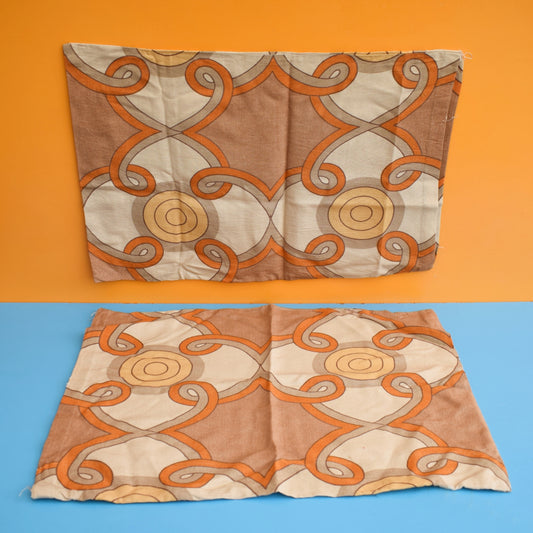 Vintage 1960s Handmade Pillow Cases / Cushions - Brown Geometric