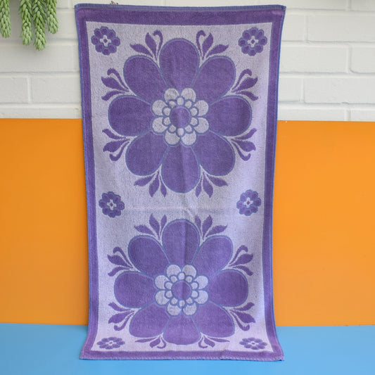 Vintage 1960s Cotton Bath Towel - Purple Flower