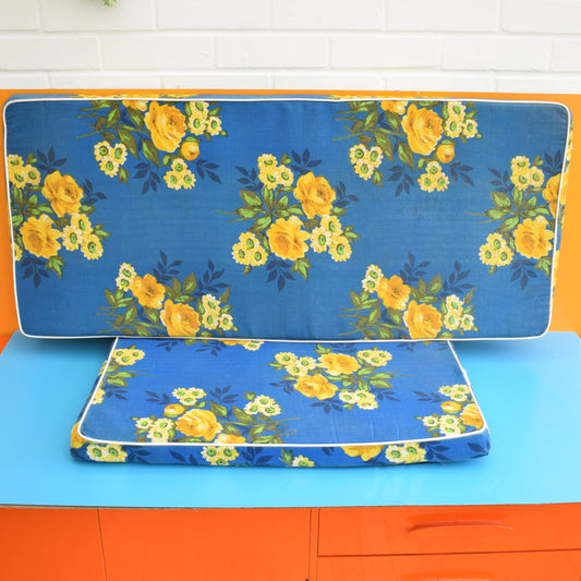 Vintage 1970s Garden Cushions / Mats -Blue & Yellow