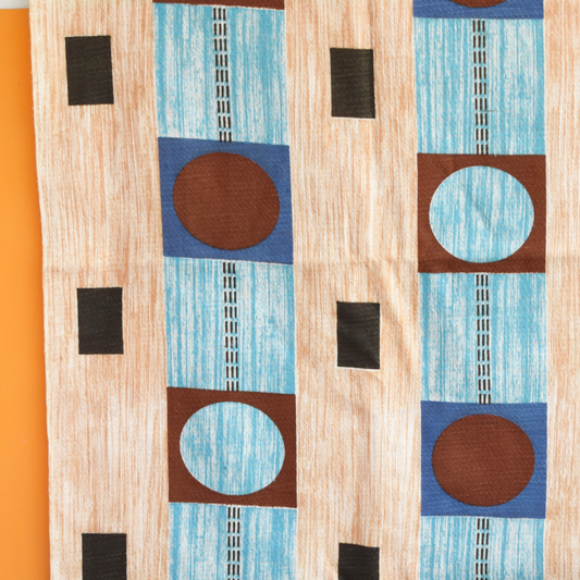 Vintage 1960s Geometric Fabric - Brown & Blue