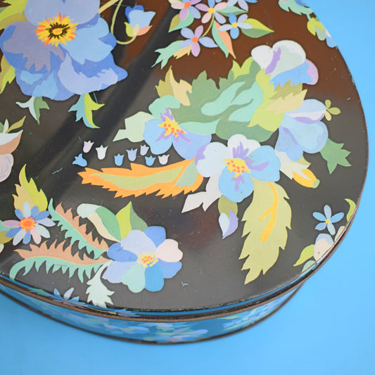 Vintage 1960s Oval Biscuit Tin - Blue Flowers