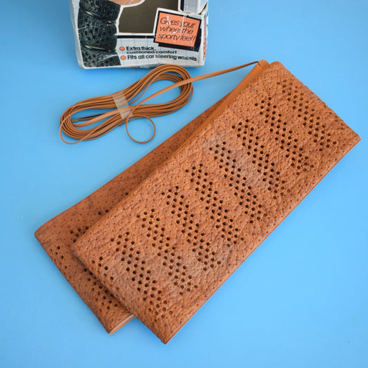 Vintage 1980s Car Steering Wheel Cover- Brown Lace Up