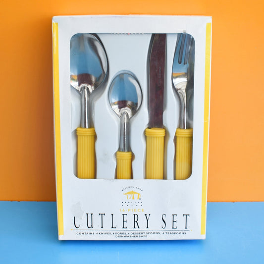 Vintage 1980s Plastic Cutlery Set - Boxed - Yellow