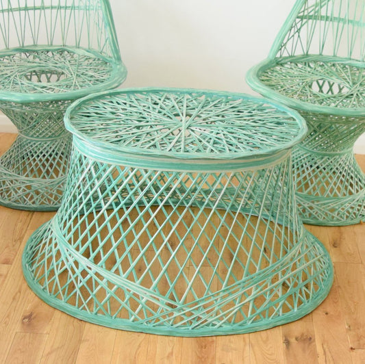 Vintage Fibreglass Strand Chairs & Side Table - Russell Woodard - Pale Green