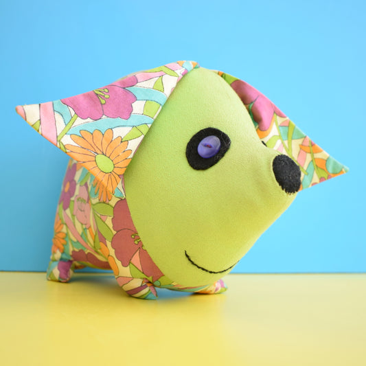 Vintage 1960s Kitsch Pig Toy - Flower Power Fabric