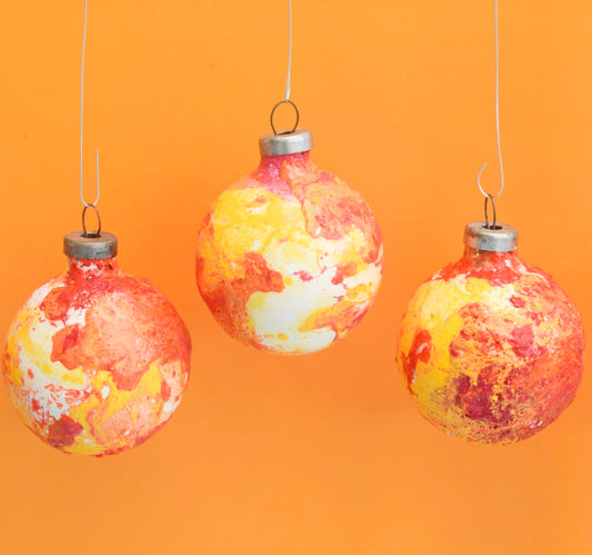 Vintage 1970s Glass Christmas Baubles - Hydro Dipped - Orange & Yellow