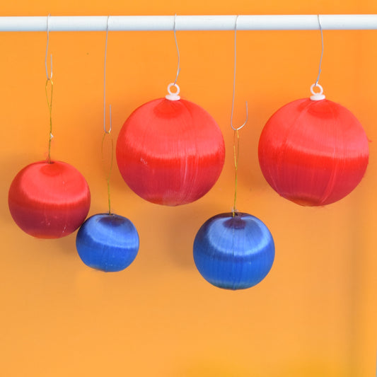 Vintage 1970s Satin Christmas Baubles - Red, Green & Blue x14