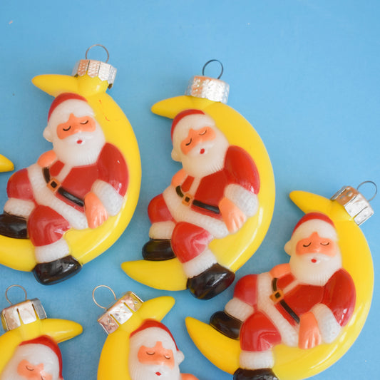 Vintage 1980s Plastic Santa & Moon Decorations x6