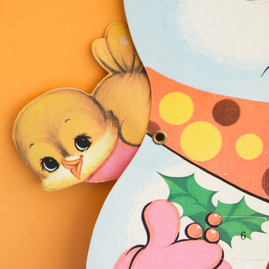 Vintage 1970s Kitsch Snowman Advent Calendar - Pull Cord