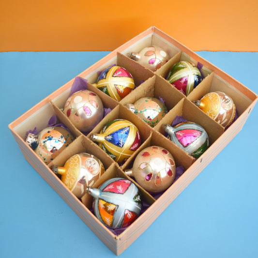 Vintage 1960s Glass Christmas Baubles - Mixed x12