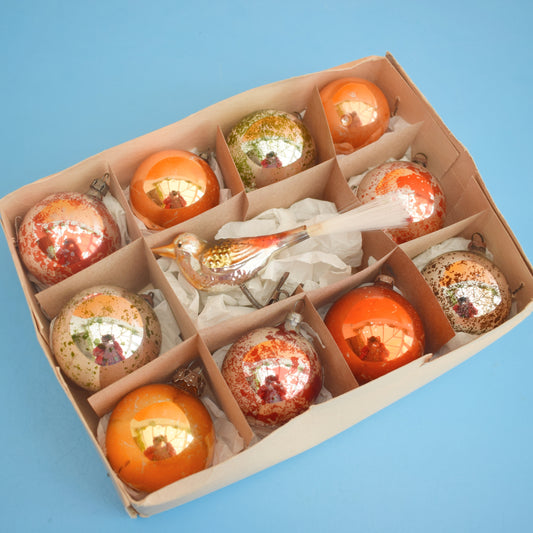 Vintage 1960s Glass Christmas Baubles - Autumnal Tones & Bird