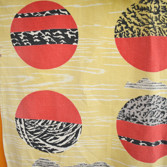 Vintage 1950s Barkcloth- Red & Yellow Geo Design