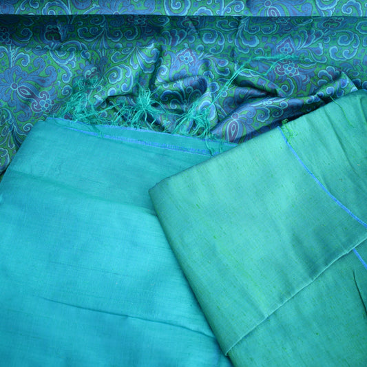 Vintage 1960s Thai Silk Fabric x3 Pieces- Teal/ Blue