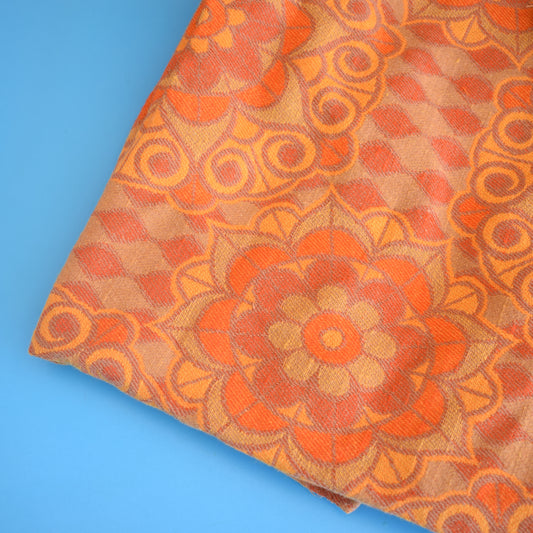 Vintage 1960s Woven Fabric - Orange Geo Flowers