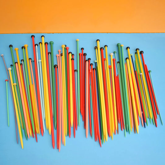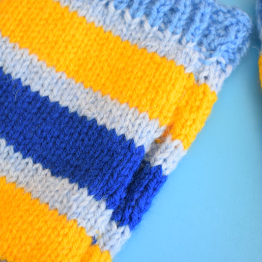 Vintage 1980s Knitted Fingerless Gloves - Blue & Yellow