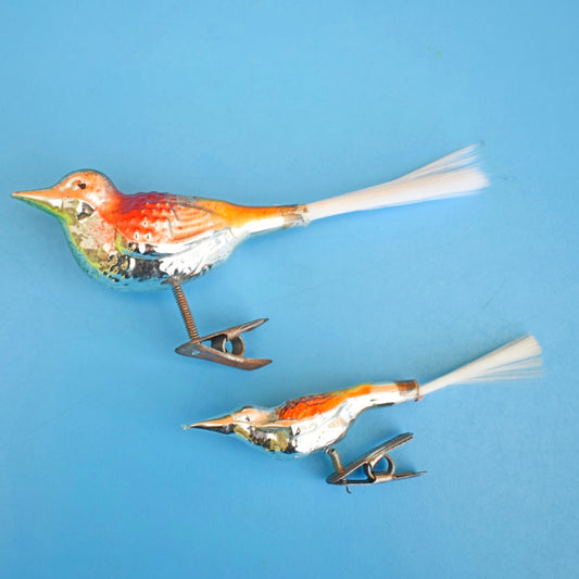 Vintage 1950s Glass Clip On Bird Christmas Decorations .