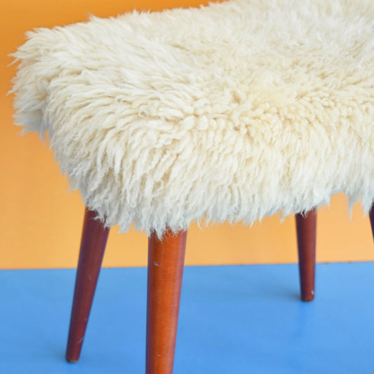 Vintage 1970s Fluffy Sheepskin Wool Stool - Cream