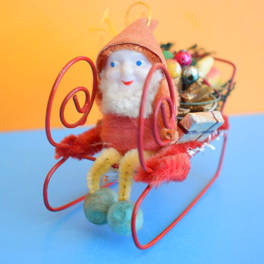 Vintage 1950s Christmas Santa Sleigh Ornament- Shiny Brite
