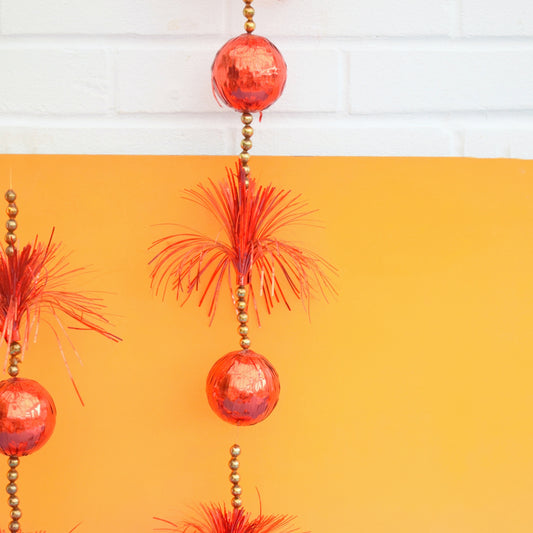Vintage 1970s Hanging Tinsel & Glass Bead Decorations - Red