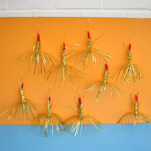 Vintage 1970s Foil Christmas Decorations - Candles x9