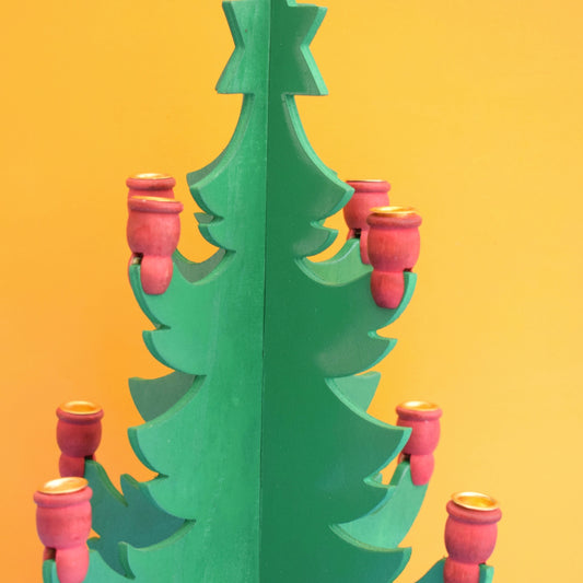 Vintage 1980s Wooden Christmas Tree Candle Holder .