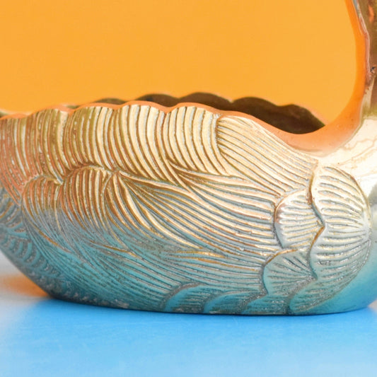 Vintage 1970s Brass Metal Swan Planter - Kitsch
