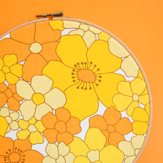 Vintage Large Fabric Wall Art Circle - Flower Power - Yellow