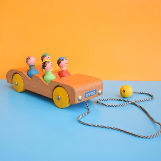 Vintage 1960s Wooden Toy Car & People - NicolToys