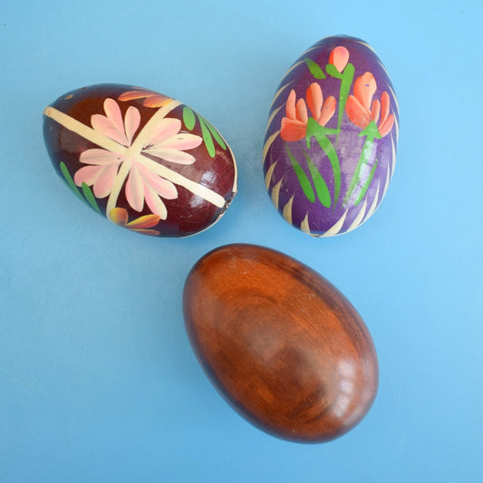 Vintage 1970s Wooden / Hand Painted Eggs - Folk Art