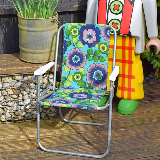 Vintage 1960s Garden Chair - Flower Power - Purple & Blue