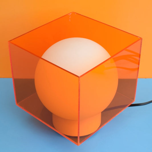 Vintage 1960s Orange Perspex / Glass Cube Lamp - Thorne