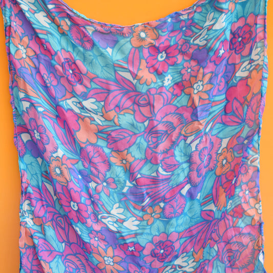 Vintage 1960s Flower Power Long Scarf - Pink & Blue