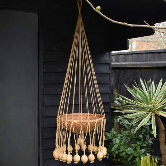 Vintage 1970s Handmade Large Macrame Hanging Planter/ Side Table