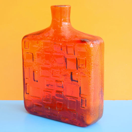 Vintage 1960s Italian Glass Square Genie Bottle - Orange