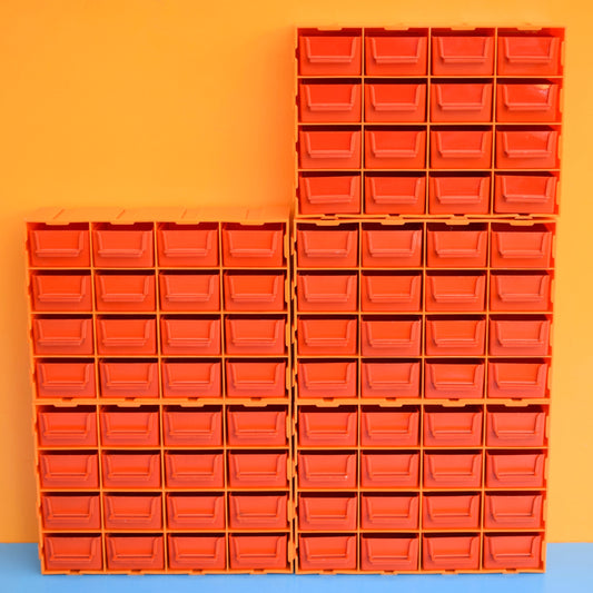 Vintage 1970s Plastic Mini Drawer Units - Hobby / Collections - Orange