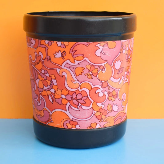 Vintage 1960s Plastic Waste Paper Bin - Pink & Orange - Plysu