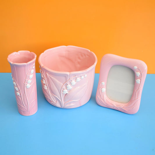 Vintage 1980s Ceramic Set- Planter, Vase & Picture Frame - Pink
