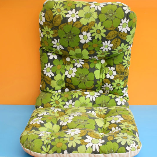 Vintage 1960s Padded Garden Cushion Flower Power - Green